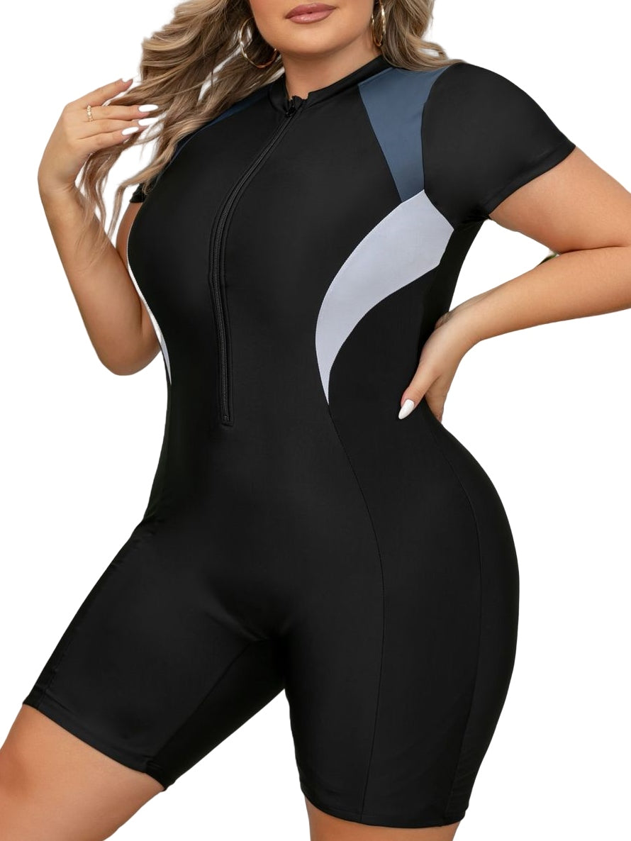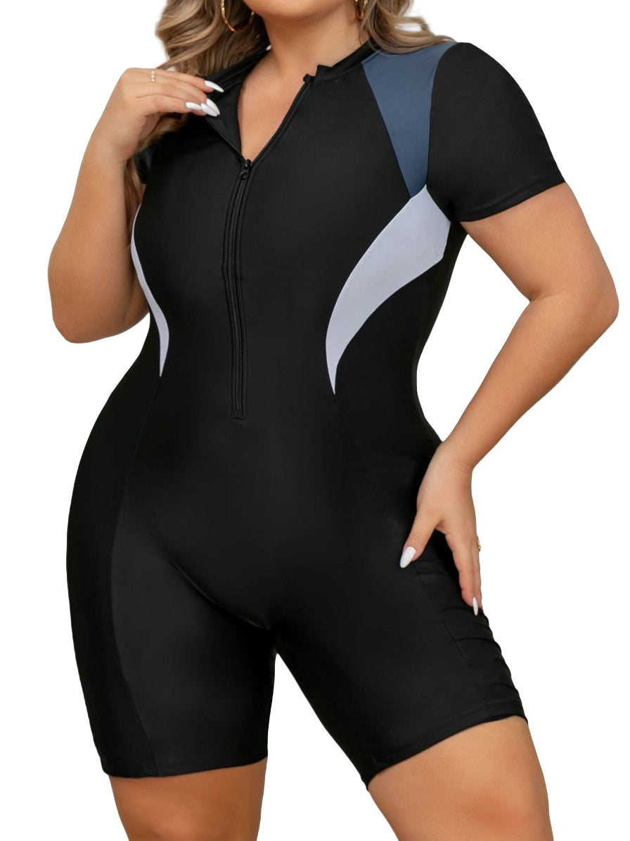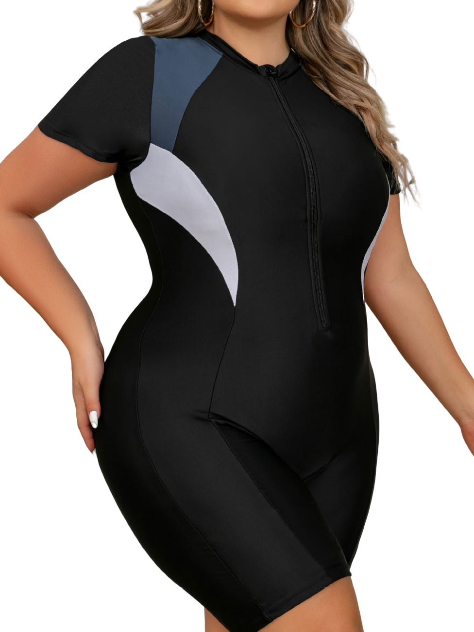 Stay confident and comfortable with our plus size short sleeve one-piece swimsuit. Designed with curve-flattering panels and a practical front zipper, this sporty swimwear provides both sun protection (UPF 50+) and freedom of movement. Perfect for water aerobics, surfing, snorkeling, or simply enjoying the beach, it’s your go-to choice for active summer days.